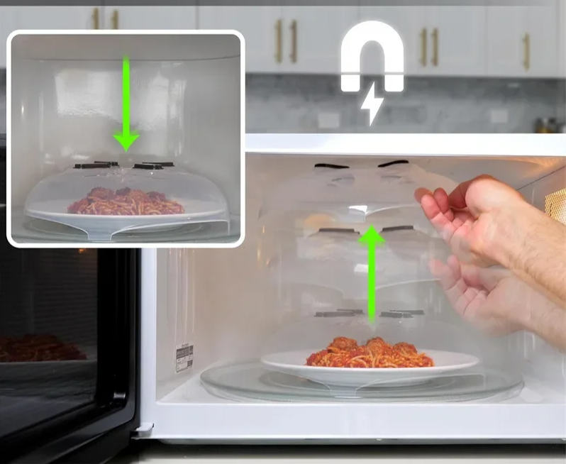 温め時の“はね”を防ぎ、庫内を清潔に保つ電子レンジ用フードカバー。食品をふんわり覆うだけで、日々のお掃除がぐっとラクになります。